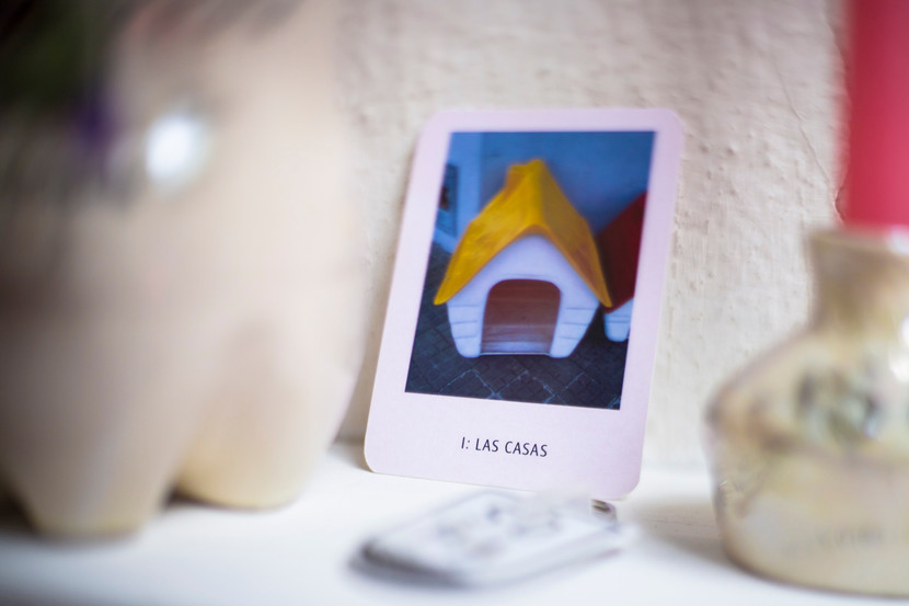 Realización de piezas con imágenes del oráculo Diccionario para sobrevivir a muchas cosas por Savia Flor + Montaje de altares para muestra